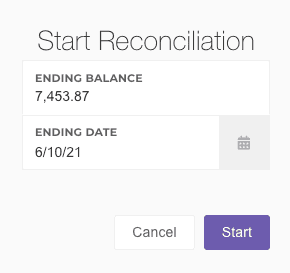 Click Start Reconciliation, and enter the ending period date from your statement. It's important to get the end date of the period to enter in your reconciliation balance.