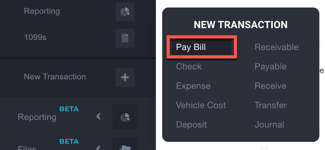 Unlike receivables, anytime you want to record a payment for something you'll have to interact directly with accounting in the payables screen, the Accounting Panel, or the New Transaction pop out.