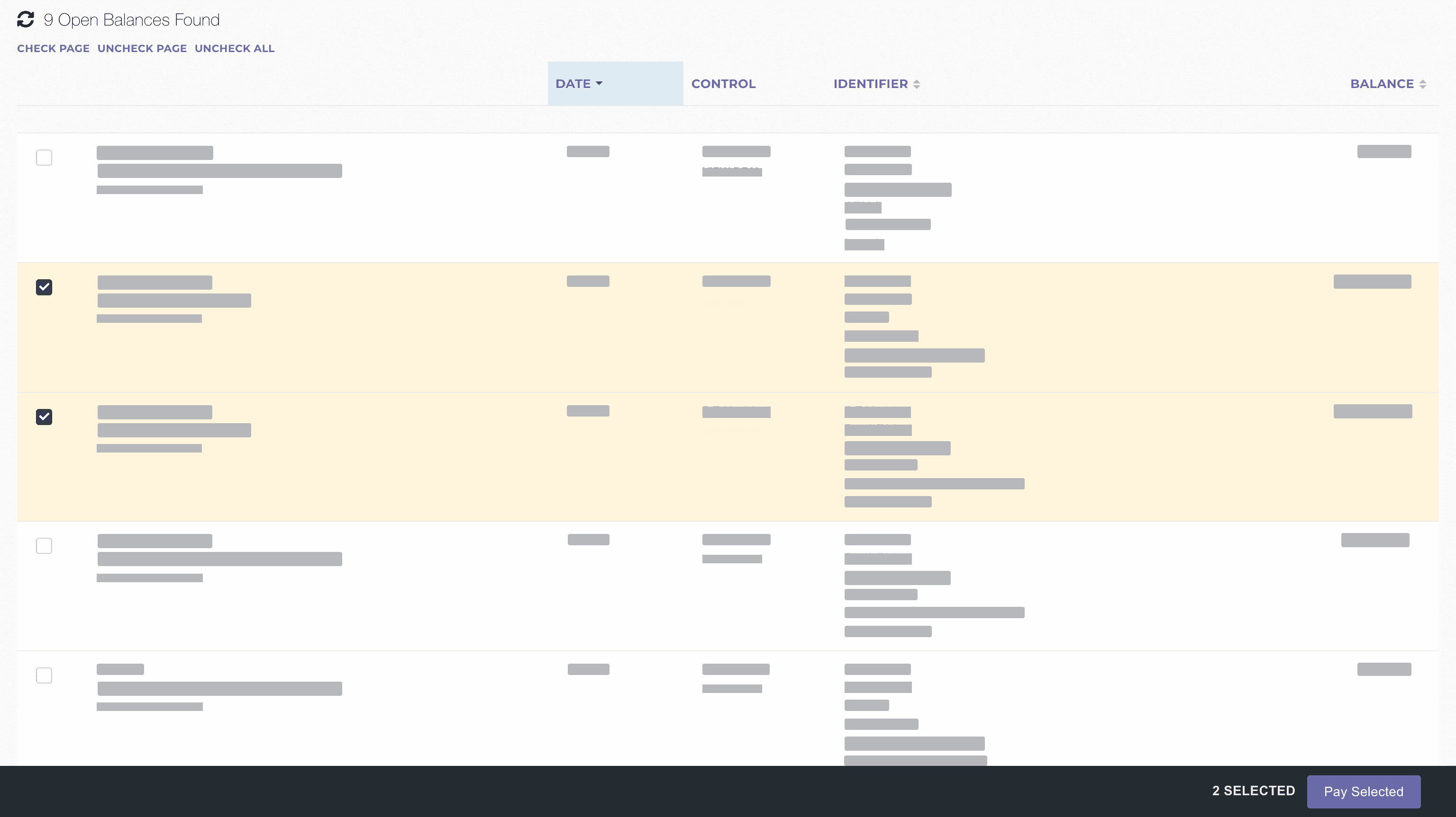 You can make payments via the Dashboard by checking off the items on the left-hand side you want to pay, and then clicking Pay Selected.