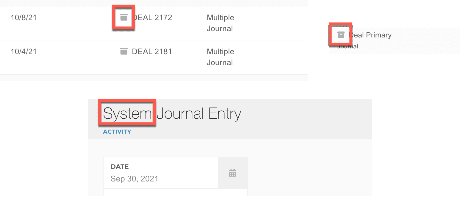 System transactions can be identified by looking for a gray box, or the transaction title containing System.