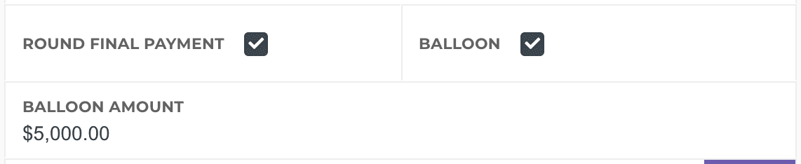 Balloon - For a loan with a "balloon" at the end of it. See Balloon Loans for more information.