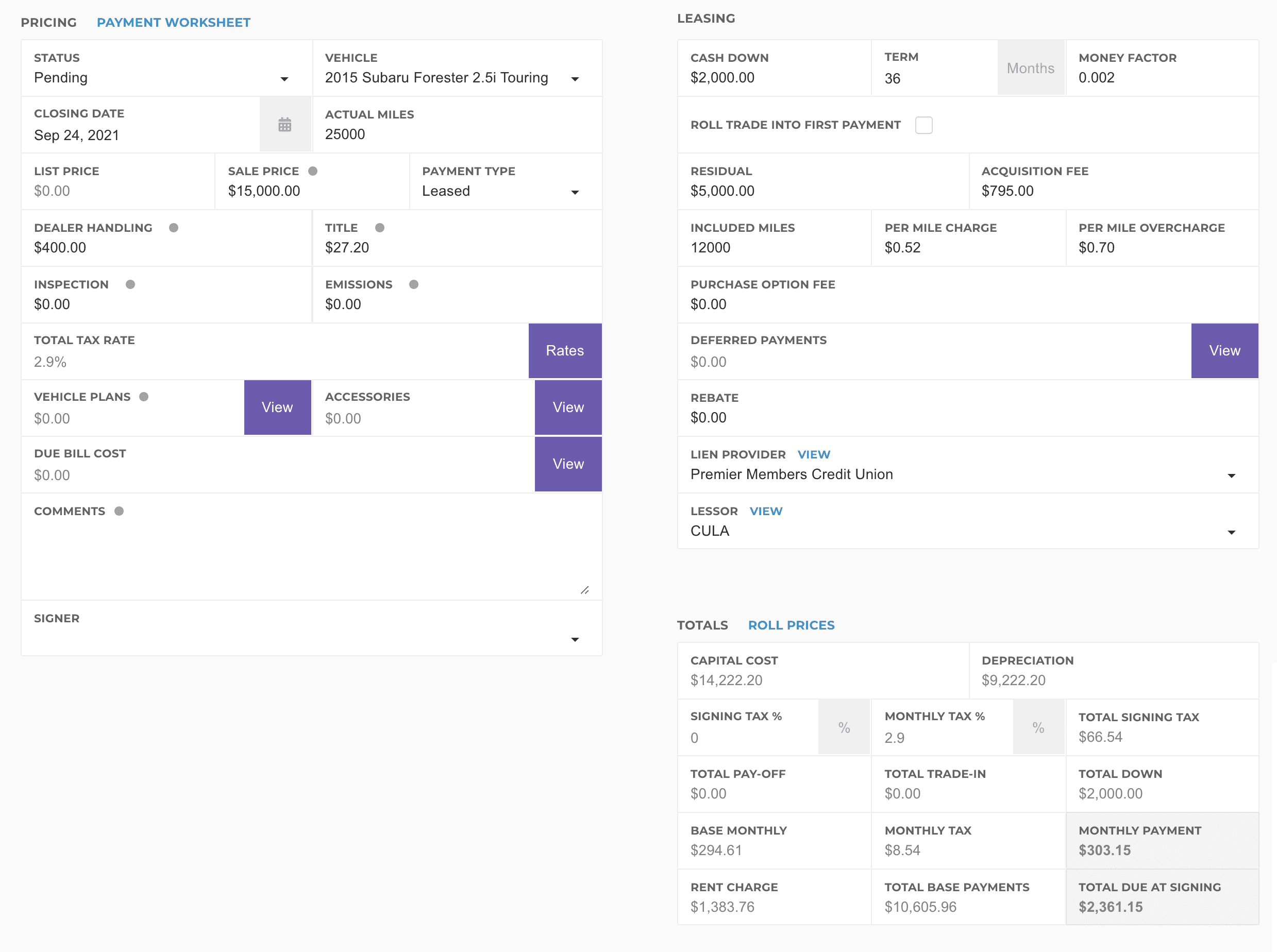 The Capital Cost shown in the deal totals is technically the Adjusted Capital Cost. This is normally what gets used on the lease to calculate monthly payments. This is also what is used to calculate the total depreciation on the lease, which gets utilized in the lease calculation. Practically everything gets added into the Capital Cost, similarly to the Total Sale on a cash or financed deal.