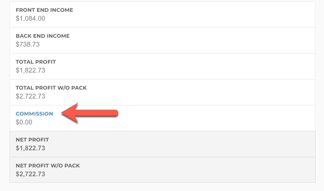 If you want to set a negative commissions on a deal (where the salesperson essentially has to "pay" you, or get paid less on their total commission check), you have to change the Front End Minimum or Back End Minimum to a negative value.