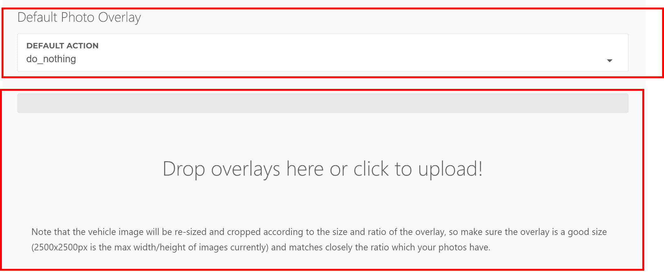 You can upload photo overlays by navigating to Manage > Settings > General > Inventory and then scrolling down until you see a section labeled, Default Photo Overlay.