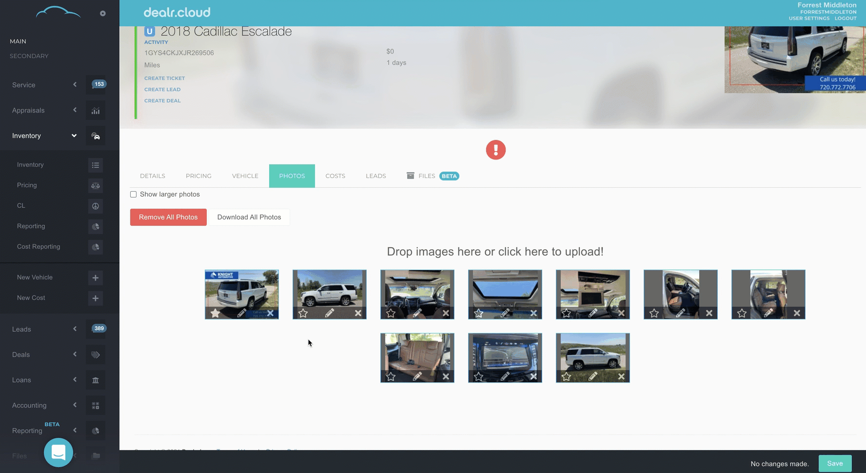 It's also easy to upload photos from the mobile app. Just open up the vehicle, go to photos, and start taking pictures! The photos will automatically get uploaded and be shown on your vehicle.