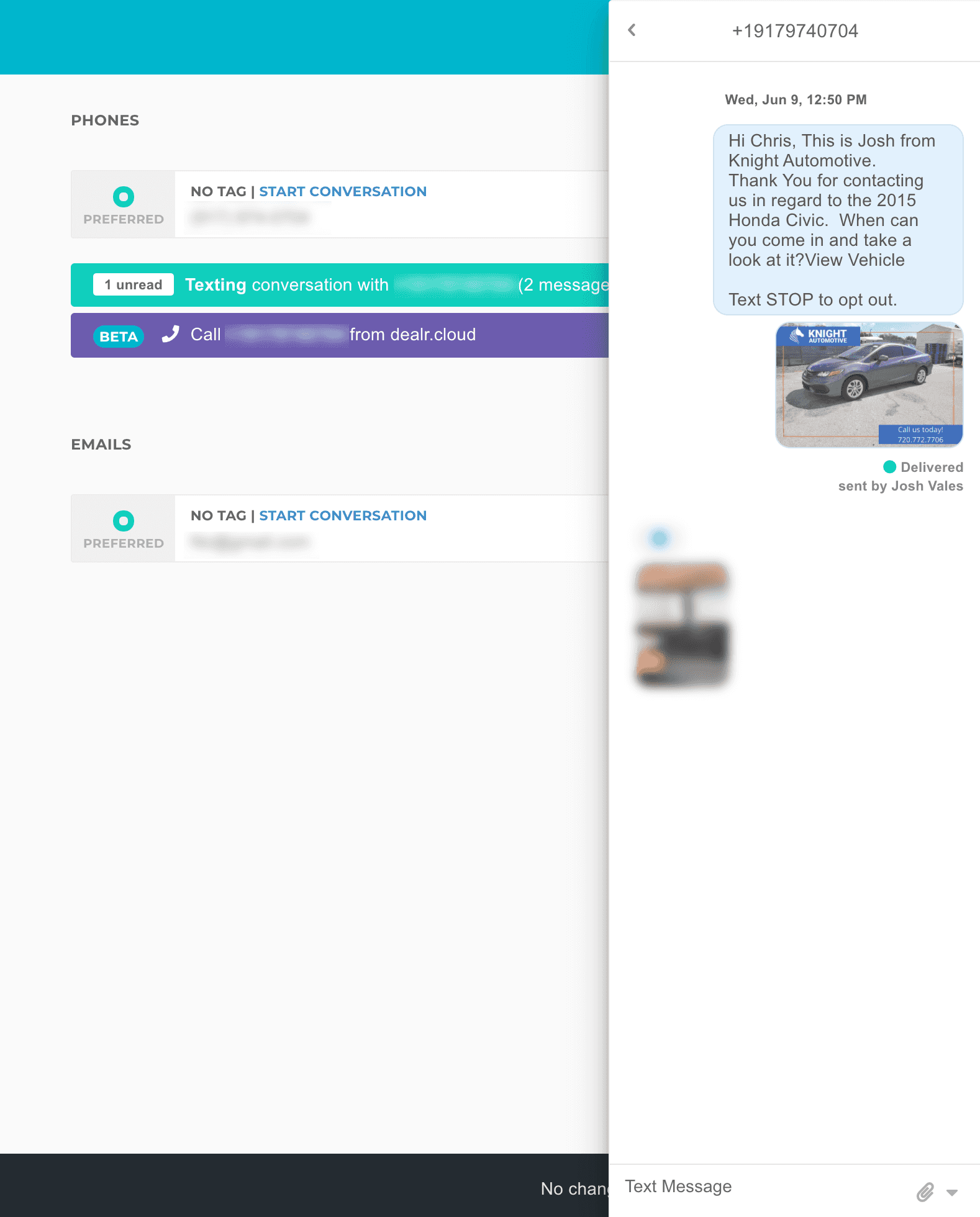 Texting (SMS/MMS) is the best way to communicate with customers today. Leads are more likely to engage and do so more quickly.