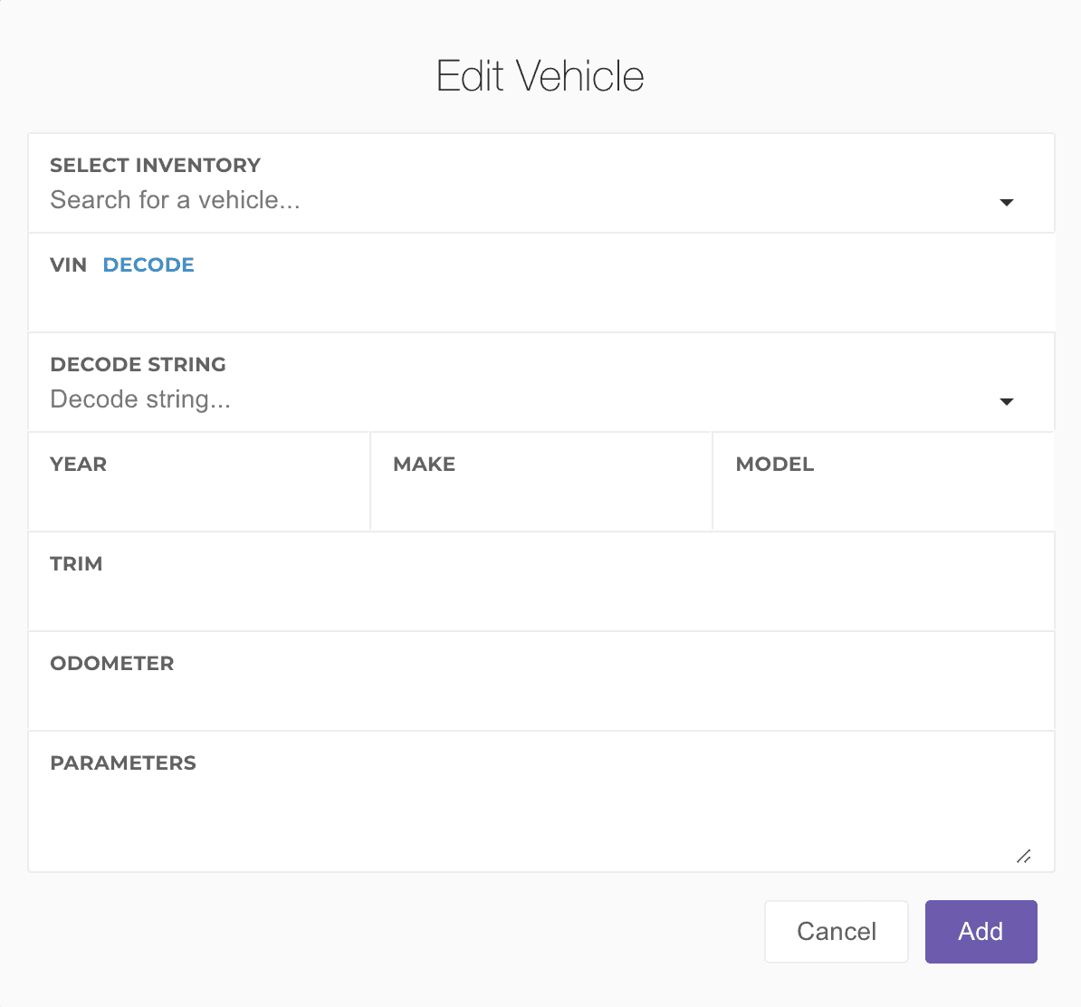 Vehicles can be from inventory, or can be added as a Search Vehicle (SV) which allows you to track customer interest on vehicles that you don't have yet.