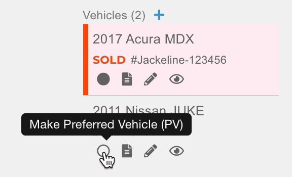 The preferred vehicle is shown using the filled circle. To switch the preferred vehicle, simply click the empty circle on another vehicle.