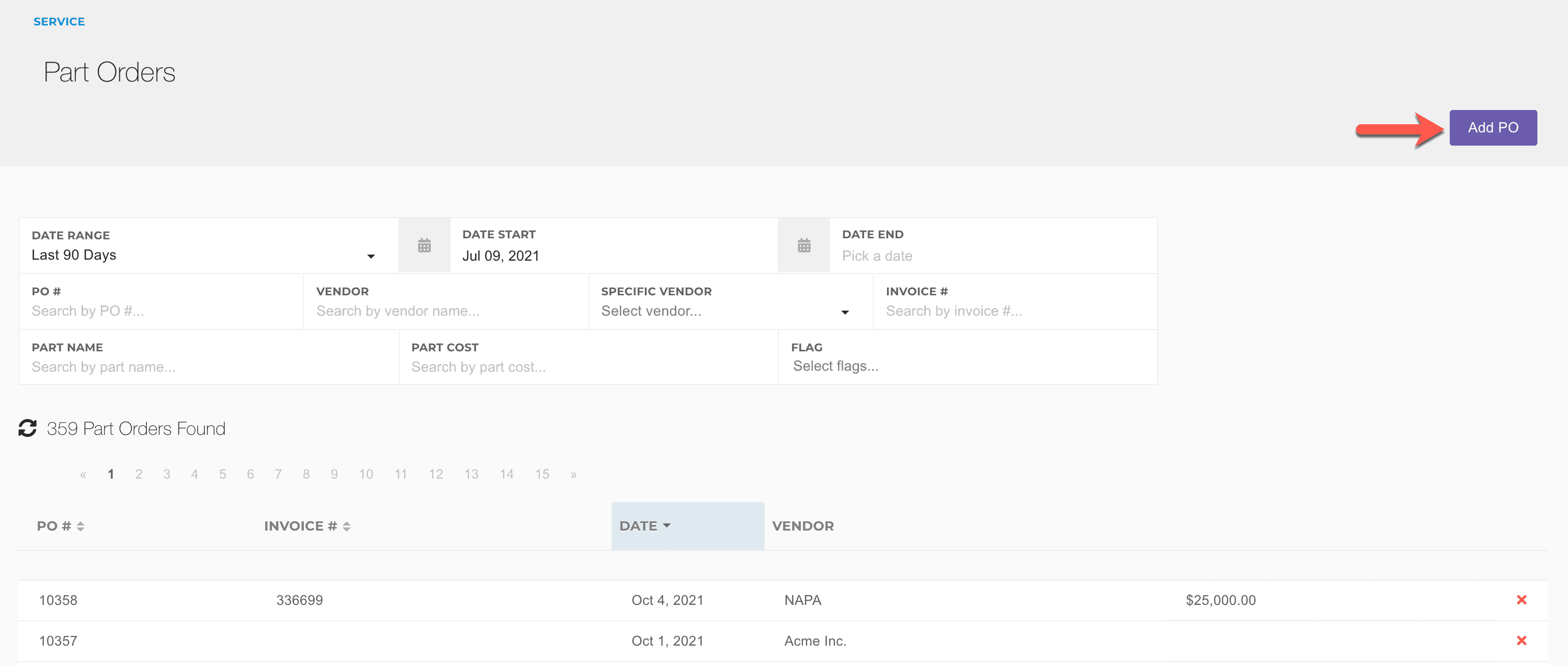 Part Orders are the way that you record part purchases in the system. They allow you to: