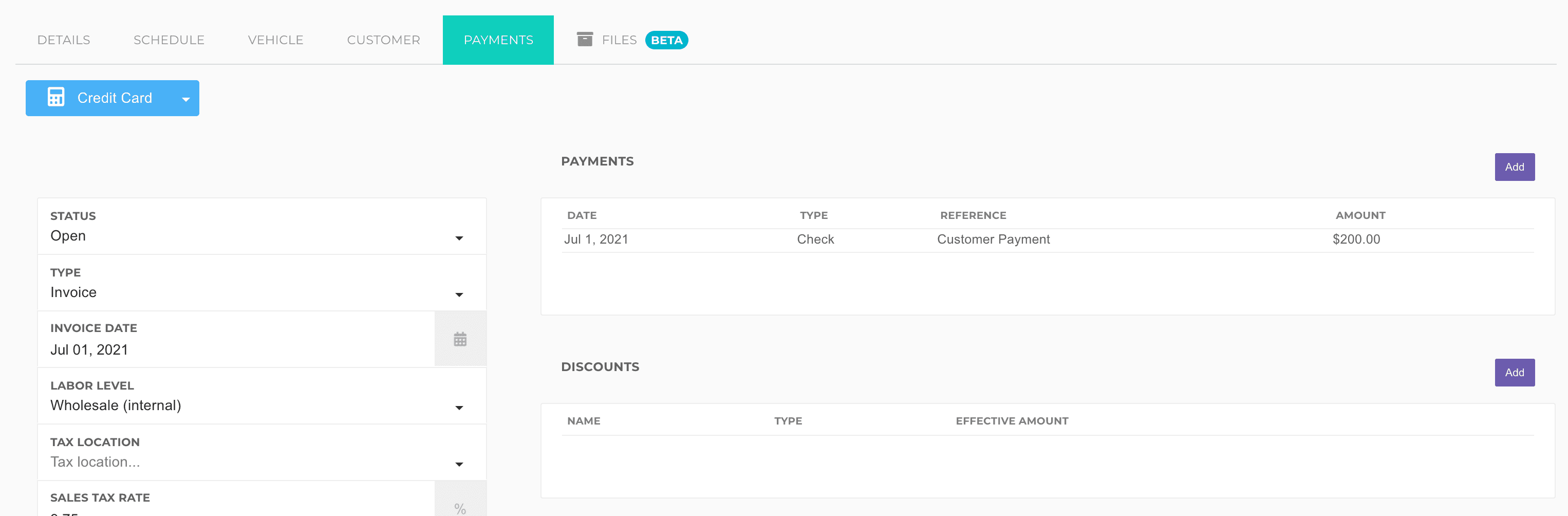 In the payments section, you can click Add to add payments.