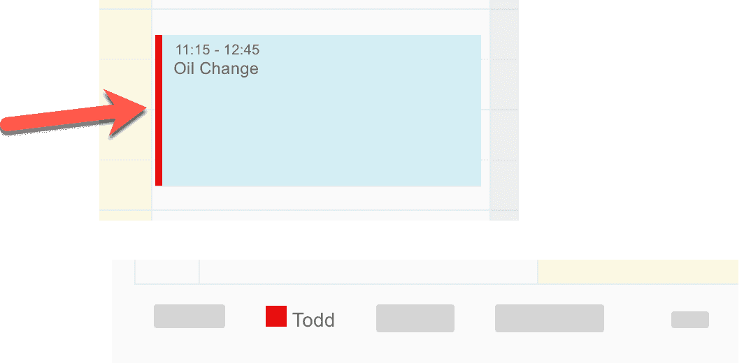 If there is an assigned mechanic on an appointment, the left-most border will show their color. A color legend is shown at the bottom of the page.