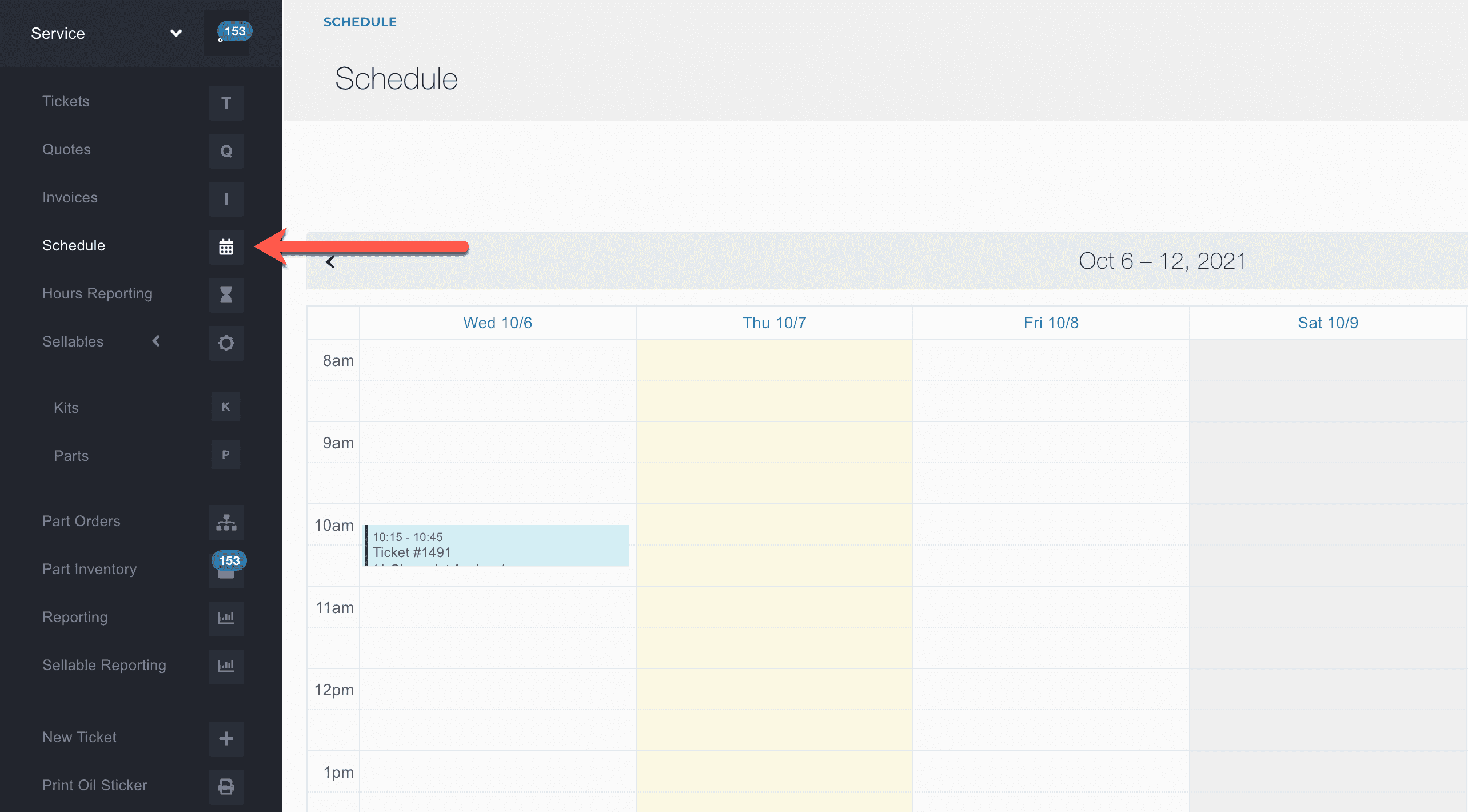 The Service Schedule is accessible from a ticket by selecting the Service button: