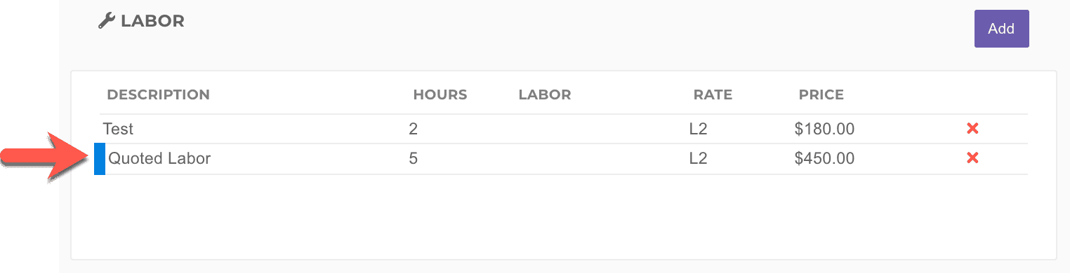 Labor Level: The billed hourly rate for the labor. Dropdown options are customizable in settings.