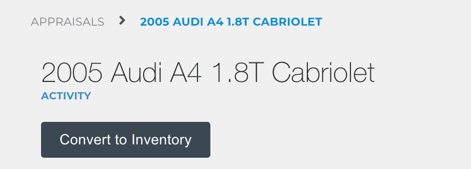Once you've completed your appraisal and have purchased the vehicle, you can Convert to Inventory to stock the vehicle in and start advertising it.